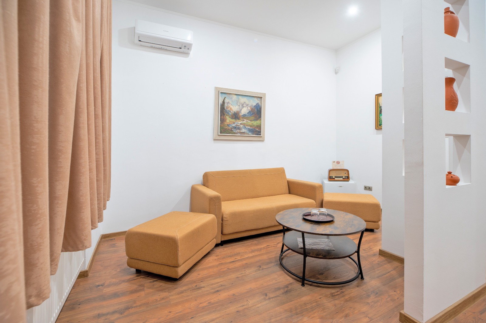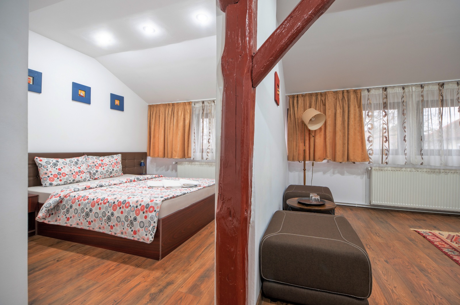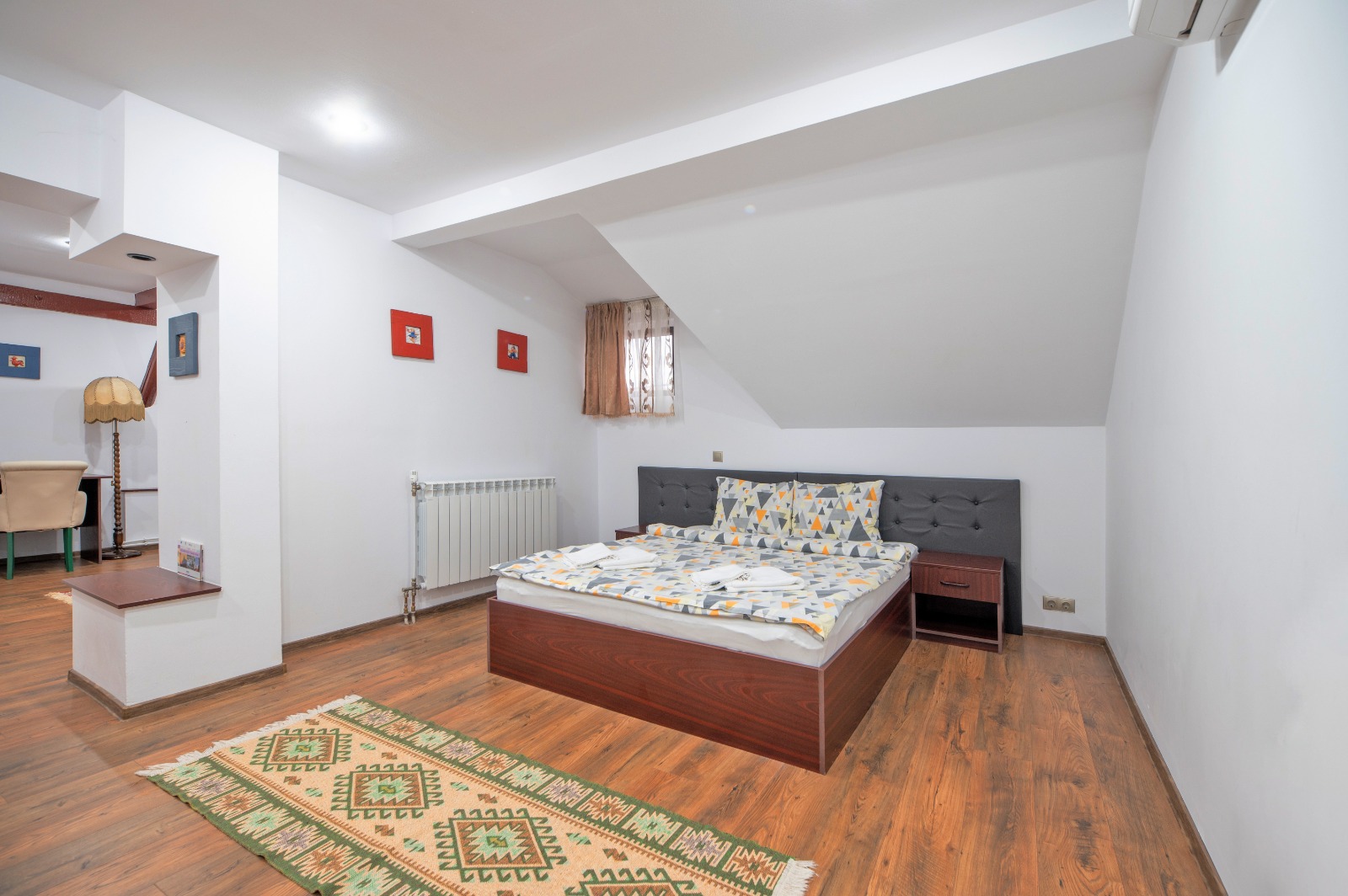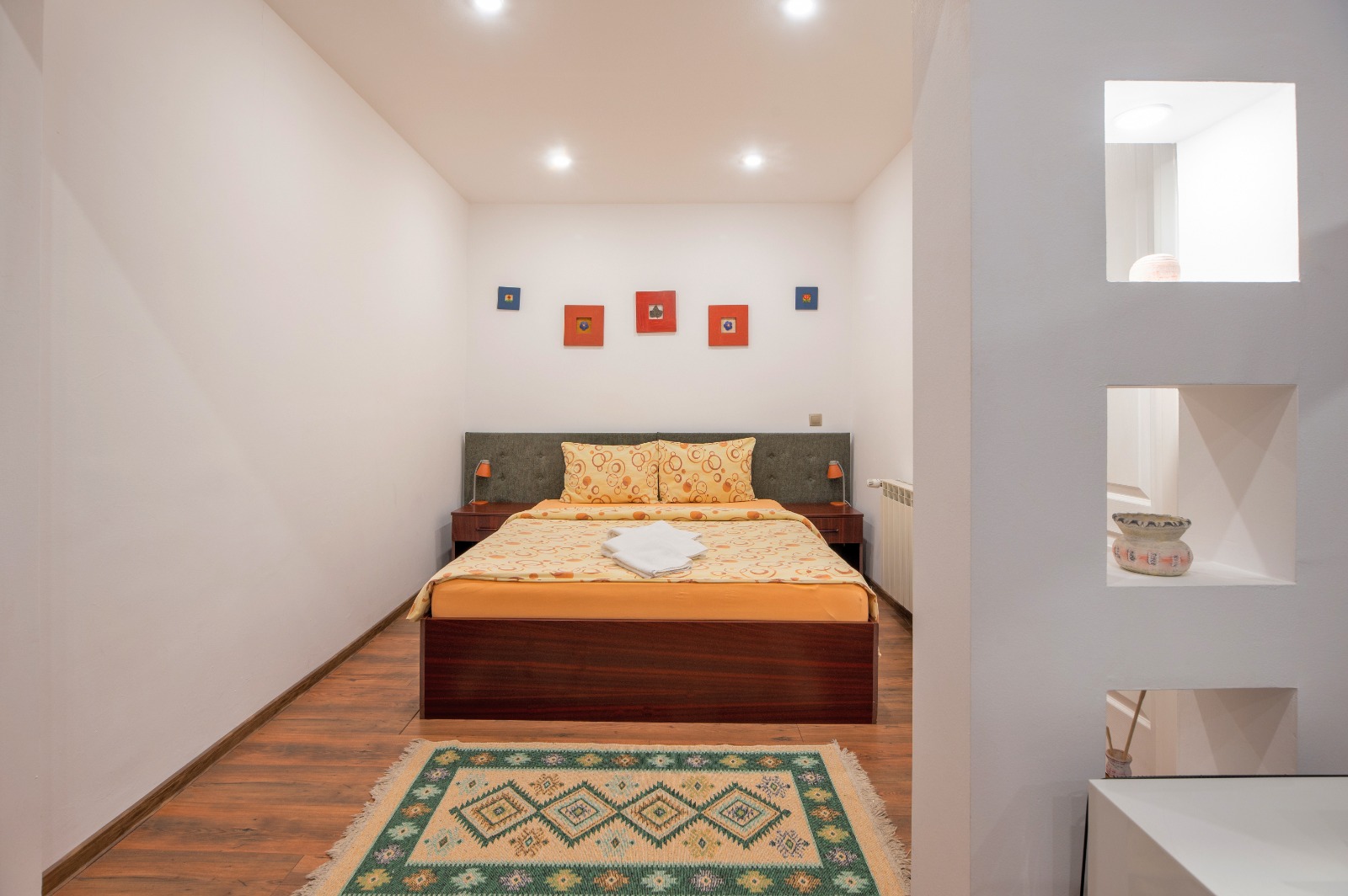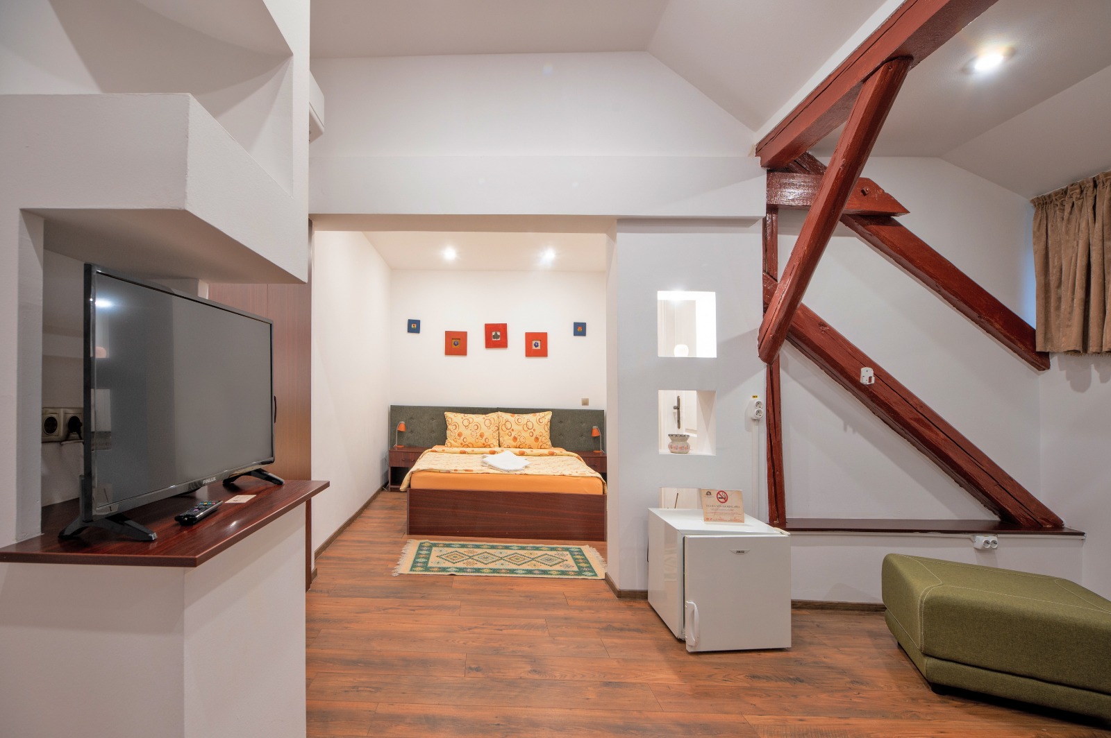 Apartamentele ofera solutia ideala pentru oaspetii care doresc mai mult spatiu si mai ales pentru cei care calatoresc impreuna cu familia. Alcatuite dintr- un dormitor, un living room cu canapea extensibila si o baie proprie cu cabina de dus. Apartamentele sunt dotate cu aer conditionat, minibar, seif, televiziune prin cablu, wi-fi, uscator de par, acestea fiind de nefumatori . In lobby-ul receptiei oaspetii pot servi dupa preferinta cafea sau ceai. Culorile alese si ambianta vor completa sederea dumneavoastra.